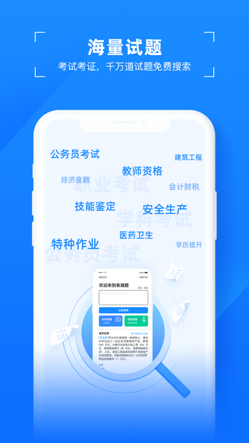 易搜题是一款教育学习的软件,平台当中能够给用户呈现出丰富多彩的学习内容,所存在的功能也是比较多的,平台也会支持一键搜索题目,总会帮助他们解决各种难题,除此之外还会有很多不同的学习资料,所有的这些他们都会有着很详细的讲解,能够让所有的用户轻松的进行学习。